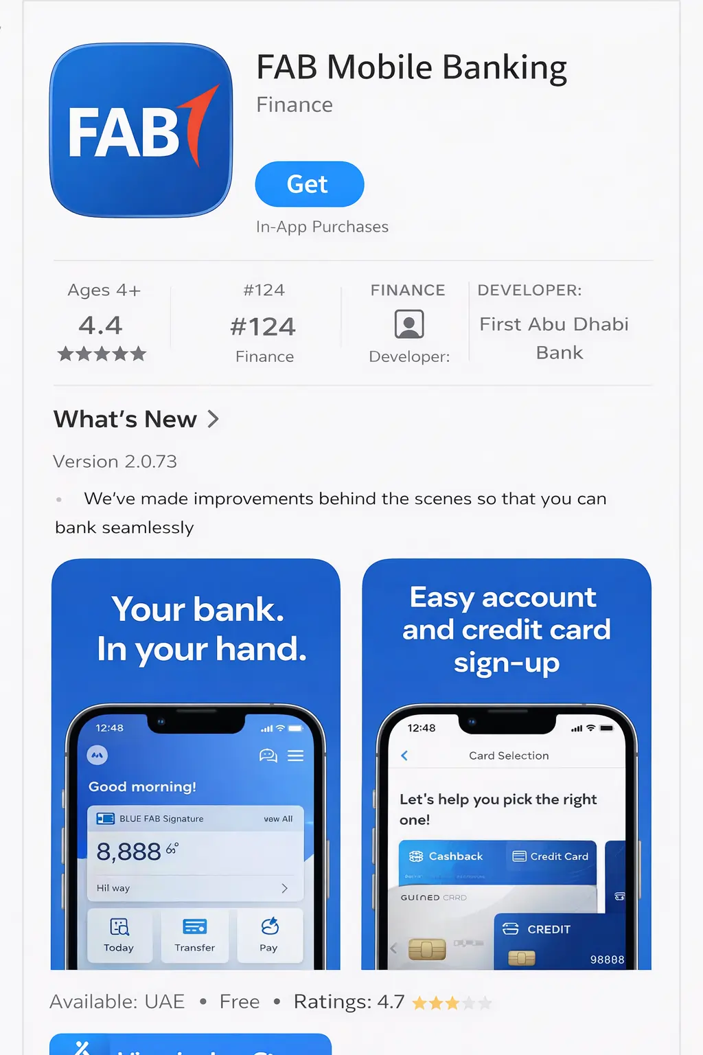 - Ensure the app is published by First Abu Dhabi Bank to avoid fake or cloned apps
