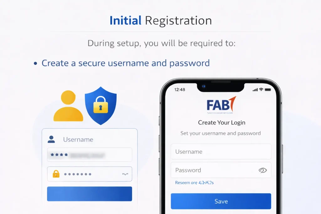 - Download the FAB Mobile App from the Google Play Store (Android) or Apple App Store (iOS)